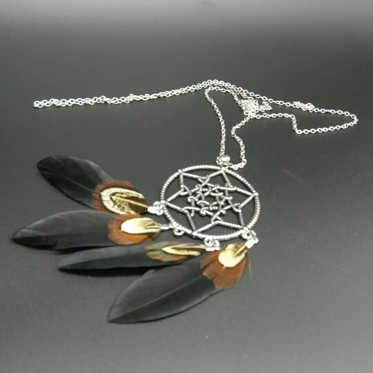 8 reviews for Ethnic Long Black Brown Feather Leather Chain Necklaces for Women Girls Vintage Dream Catcher Pendants Sweater Necklace Jewelry