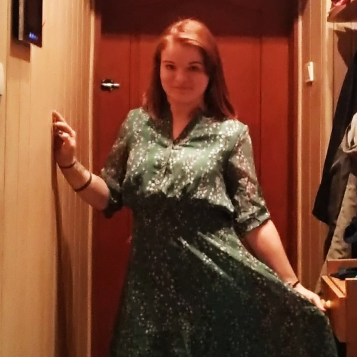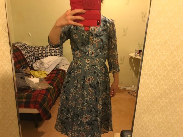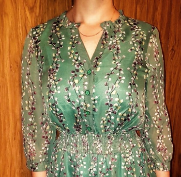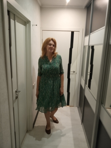The dress is a bit too big: the height of 155 to the ankles and in the sleeves is quite loose. Quality is good, there is a dense lining. I will wear with a belt. I’ll add a photo later.