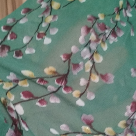 Arrived 23days.Fast shipping, Green printed and chiffons material soft and light, i like it.