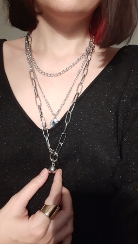 2 reviews for KMVEXO Multilayers Punk Metal Cross Round Pendant Necklaces For Women Men Lover’s Jewelry Geometric Clavicle Lock Chain Necklace